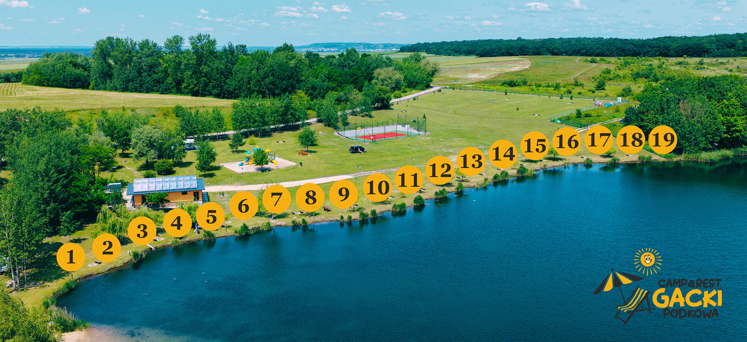 Do dyspozycji gości oddajemy zróżnicowaną linię brzegową oraz numerowane stanowiska, które można zarezerwować z wyprzedzeniem.